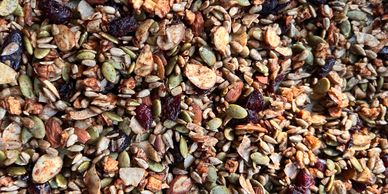 Our Gluten free and Vegan Granolas are made in small batches by hand with love.